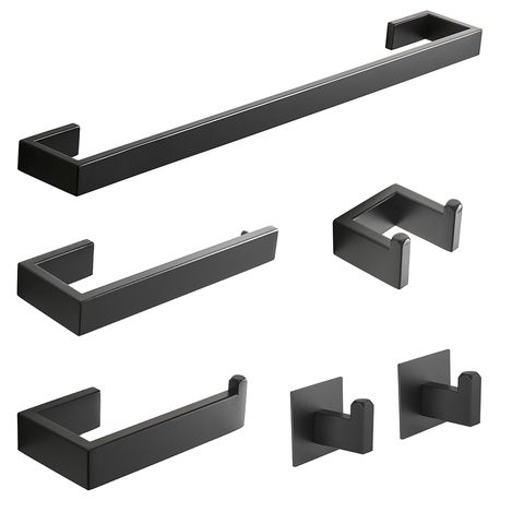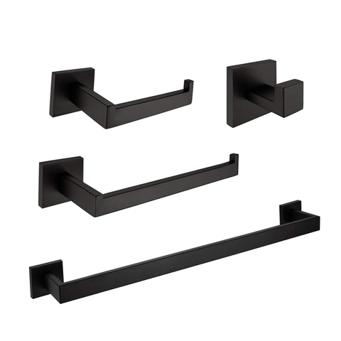 4 adet kare tasarım havlu bar seti mat siyah Modern banyo aksesuarları donanım seti