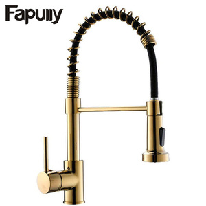 Tek delikli kurulum için püskürtücü Pull-down tasarımı ile FAPULLY Modern altın tek kollu mutfak musluk için