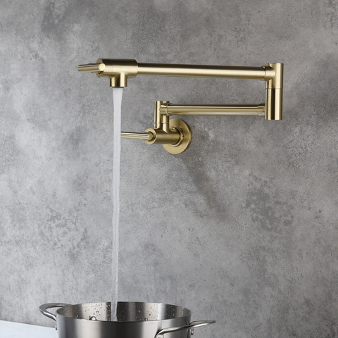 CN; Zhe ก๊อกน้ำห้องครัวสีทองแบบคลาสสิกที่ทันสมัยก๊อกน้ำอ่างล้างหน้าติดผนังก๊อกน้ำทองเหลืองเซรามิกแบบพับได้